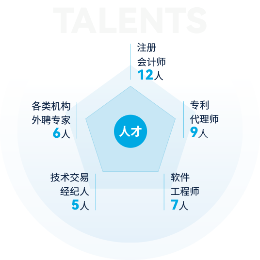 截止2024年,公司擁有各類人才400余人,其中全職博士2人,全職碩士23人,本科188人,專科200余人,注冊(cè)會(huì)計(jì)師12人,專利代理師9人,軟件工程師7人,技術(shù)交易經(jīng)紀(jì)人5人,南京企服中心等各類機(jī)構(gòu)外聘專家6人,公司還和南京大學(xué)、東南大學(xué)、南京農(nóng)業(yè)大學(xué)、南京信息工程大學(xué)、南通大學(xué)、江蘇開放大學(xué)等建立了良好的合作關(guān)系。